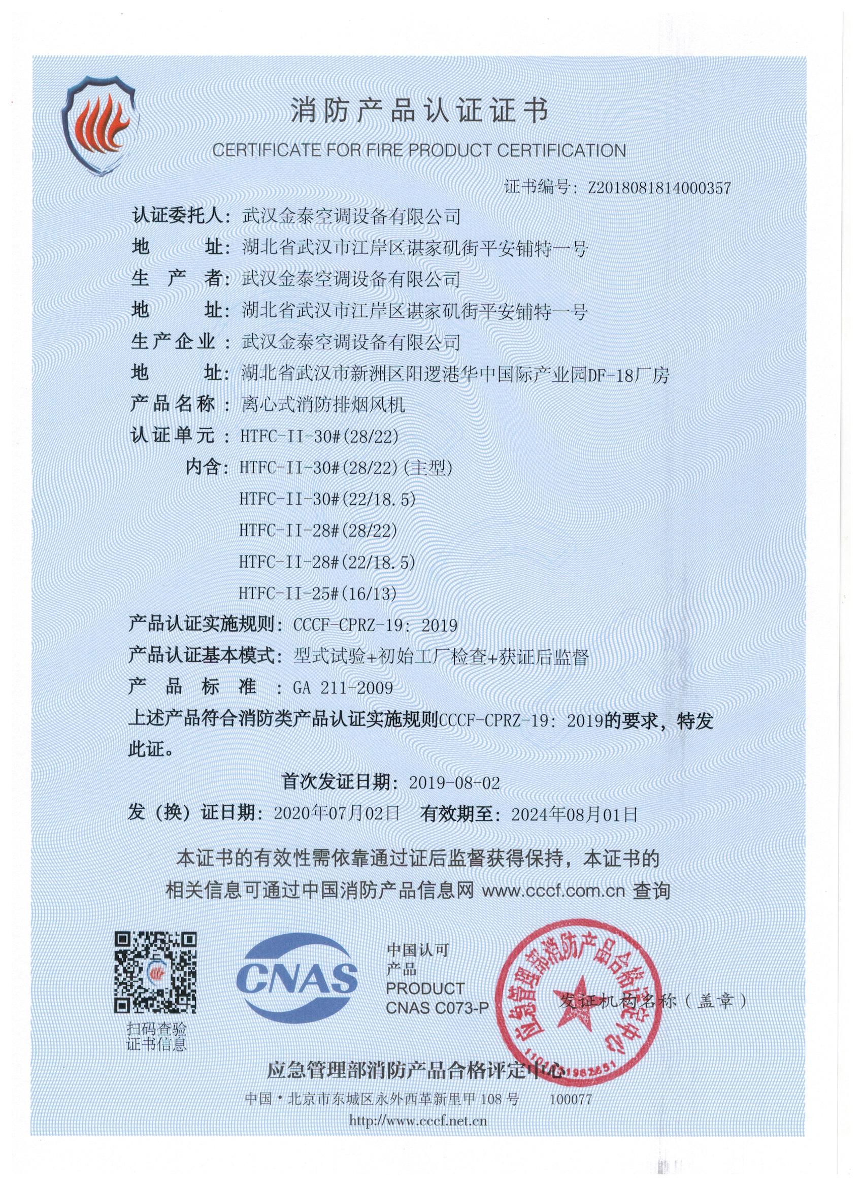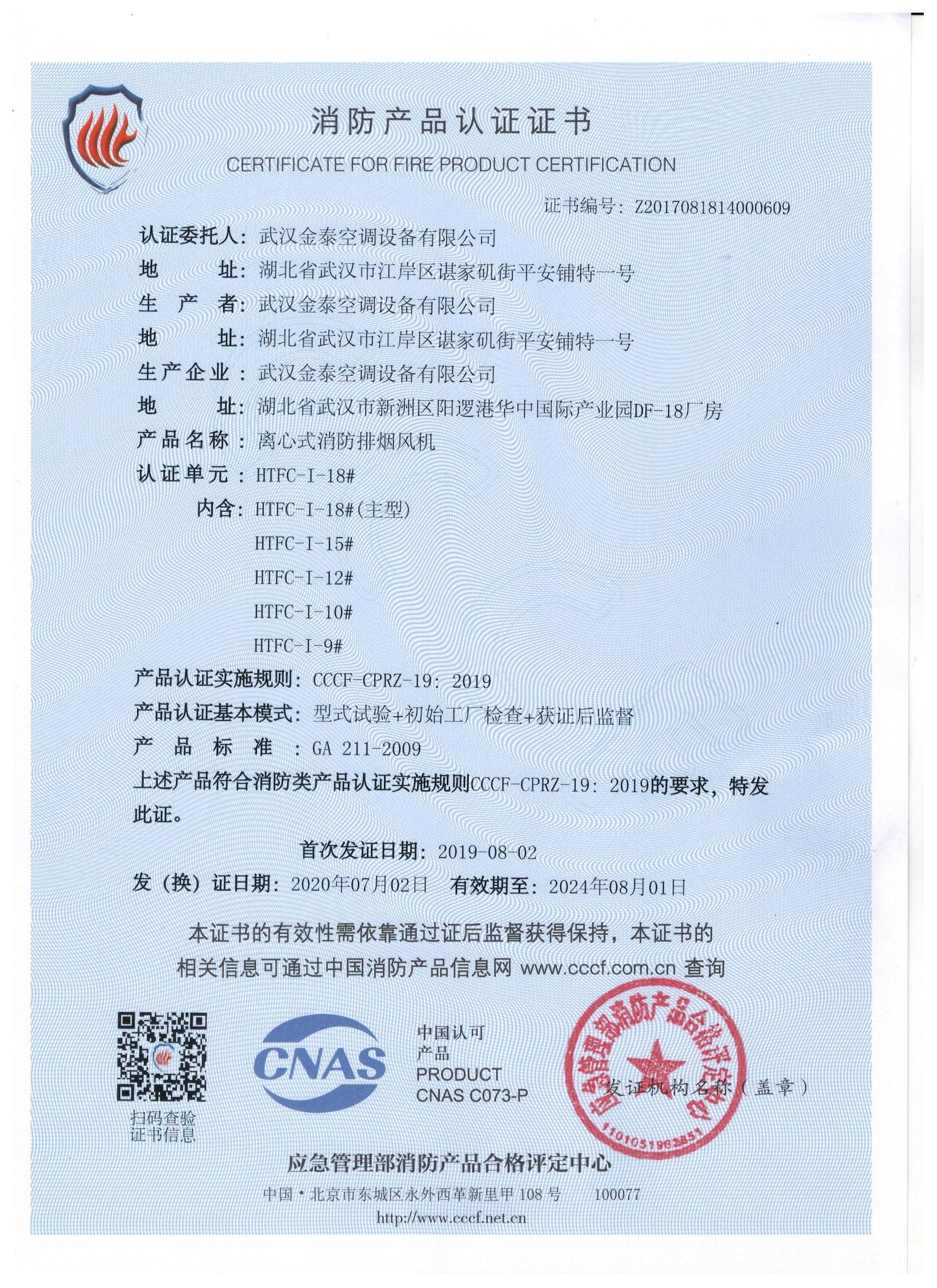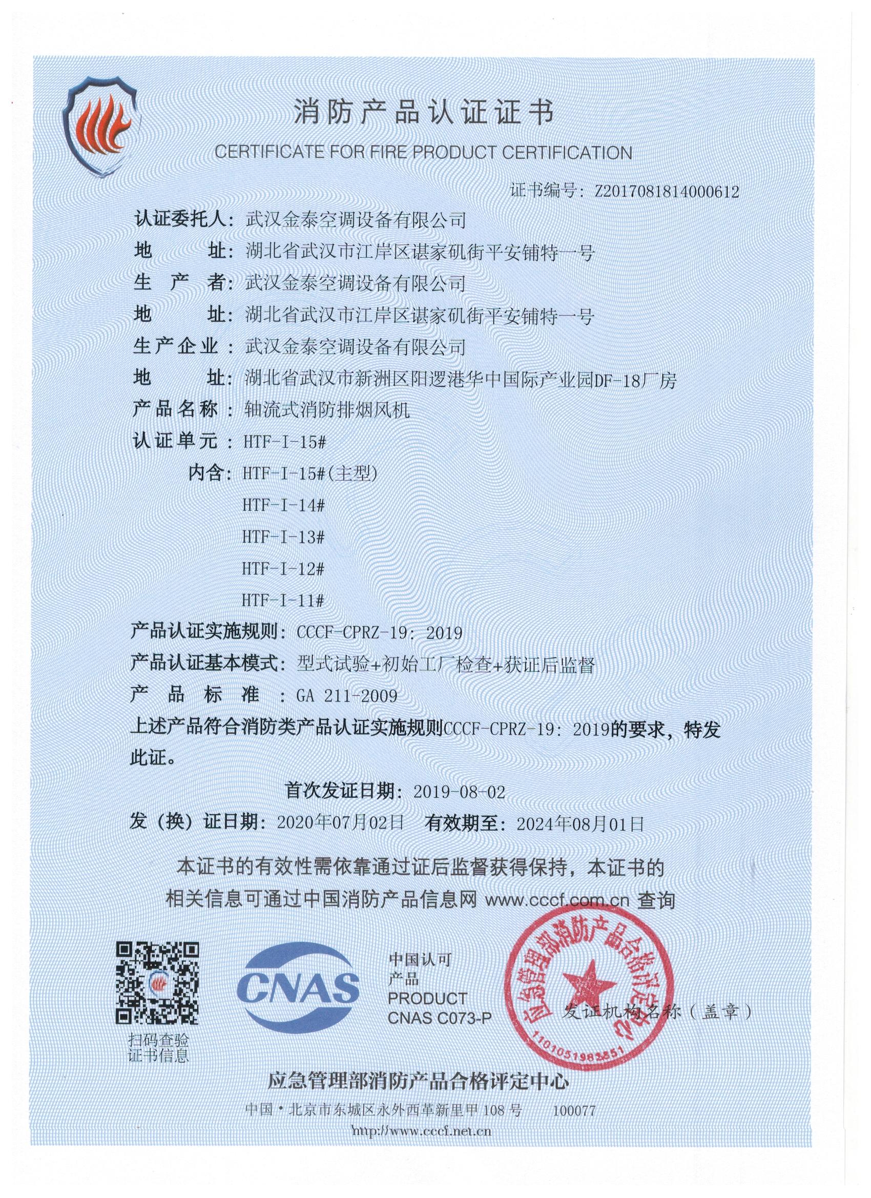 武漢金泰空調(diào)設(shè)備有限公司 是國(guó)內(nèi)長(zhǎng)期專(zhuān)注于民用風(fēng)機(jī)、工業(yè)風(fēng)機(jī)領(lǐng)域的標(biāo)桿企業(yè):專(zhuān)業(yè)生產(chǎn)消防排煙風(fēng)機(jī)系列、排煙防火閥系列、一般通風(fēng)機(jī)系列(軸流式、離心式、屋頂式、壁式、隧道式、射流式)、風(fēng)口、風(fēng)管等消防及通風(fēng)設(shè)備。產(chǎn)品經(jīng)公安部消防產(chǎn)品合格評(píng)定中心評(píng)定符合消防產(chǎn)品CCC標(biāo)準(zhǔn);經(jīng)中國(guó)合格評(píng)定國(guó)家認(rèn)可委員會(huì)認(rèn)證的檢驗(yàn)所檢驗(yàn)合格;經(jīng)國(guó)家防火建材質(zhì)量監(jiān)督檢驗(yàn)中心(四川中心)火燒實(shí)驗(yàn),耐火性能達(dá)標(biāo)。